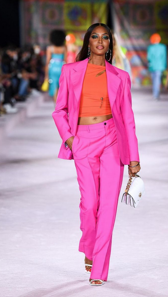 Uniti dunque al foulard, protagonista assoluto, ci sono materiali e capi tutti estremamente diversi e simili tra loro, dal total black, a colori accesi e accecanti. Dal denim giovanile indossato dalla supermodella italiana Vittoria Ceretti, al tailleur colorato, arancione e fucsia, della grandissima Naomi Campbell, passando per gli abiti in latex, come il primo indossato da Gigi Hadid, e quello indossato dalla supermodella Iman Hammam, che con la sua camminata elegante e seducente, l’ha reso, tra tutti, il mio vestito preferito.