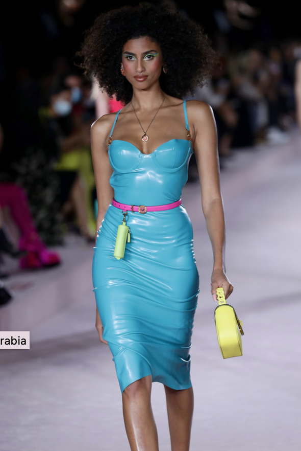 Volgo poi lo sguardo, un po’ attonito, e un po’ goloso, all’iconica sfilata Versace, Primavera-Estate 2022, che sì è svolta il terzo giorno, e mi accorgo che la mia affermazione è pura verità.